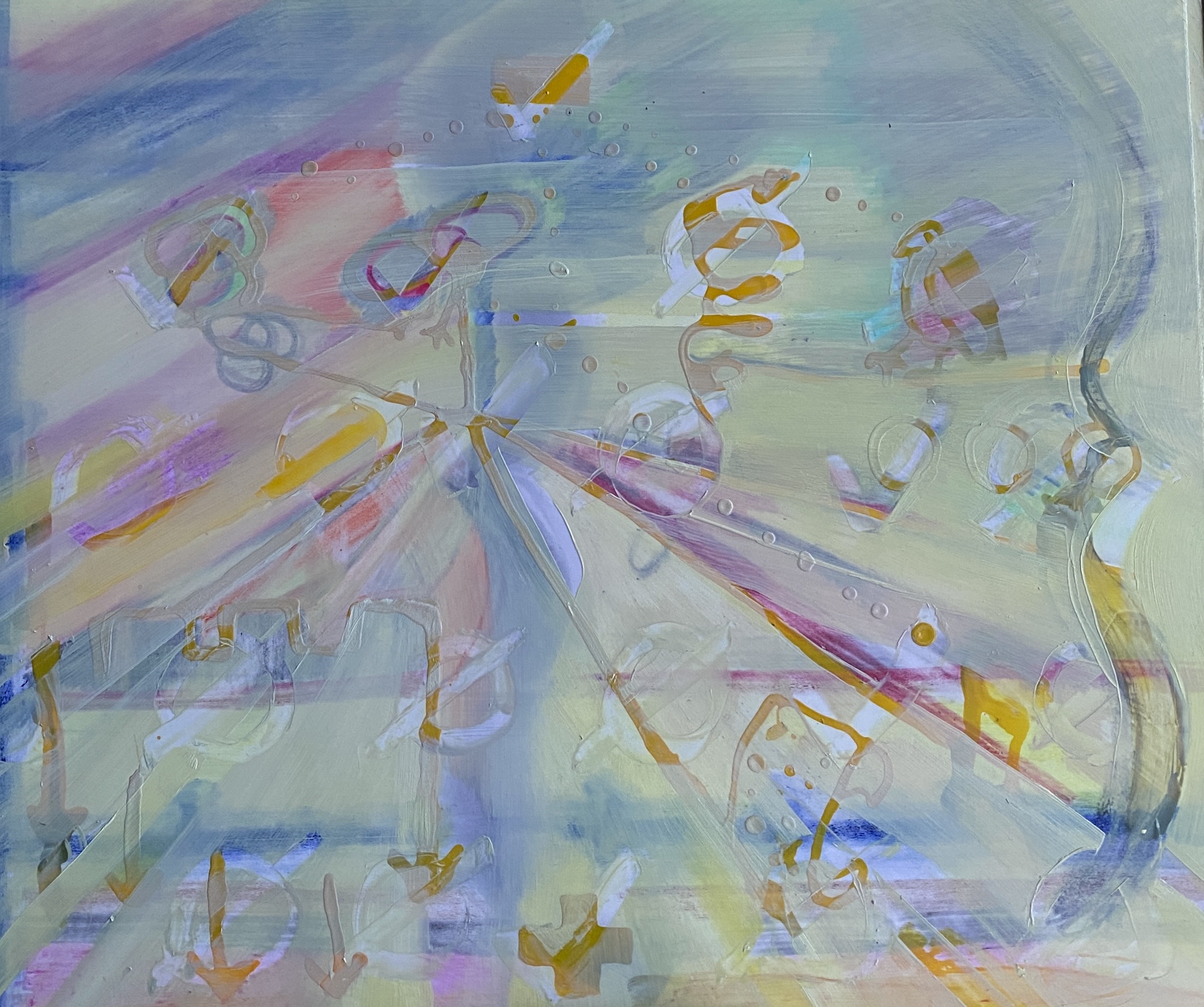 Tile relief paintings that test the accessibility of images across carved clay surfaces. I sync histories of Islamic tiling and language translation tablets onto clay networks. Fluorescent gradients run under painted landscapes, charging the circulation of images. Tracking moments of overlap between my Turkish, Spanish, and English languages, I seek the shared shape of a word. The oversaturation of recognizable symbols form patterns that span across paintings, lifting into an infrastructure of varying visual speeds. Each tile is the anticipated shadow of a future output.